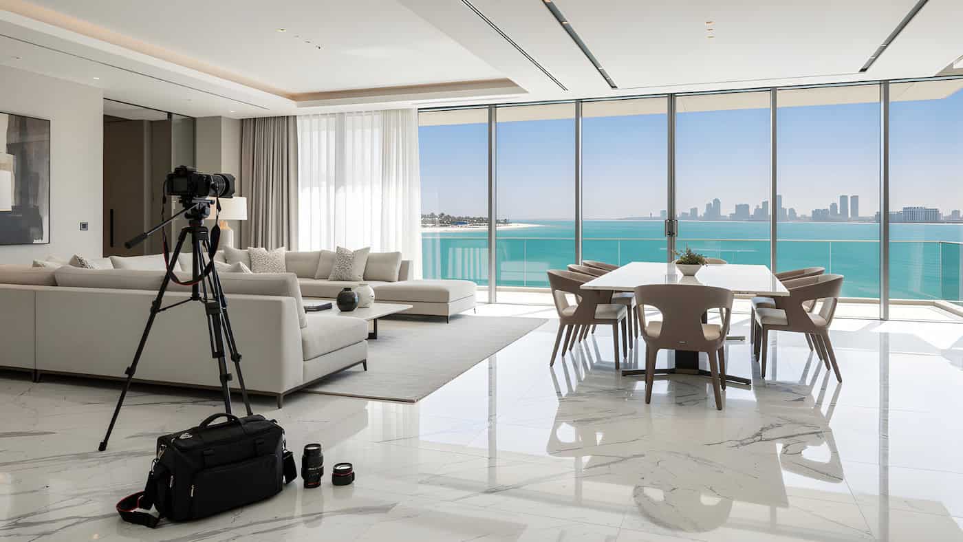 An Airbnb photographer in Dubai Creek Harbour tailors images specifically for short-term rental success.